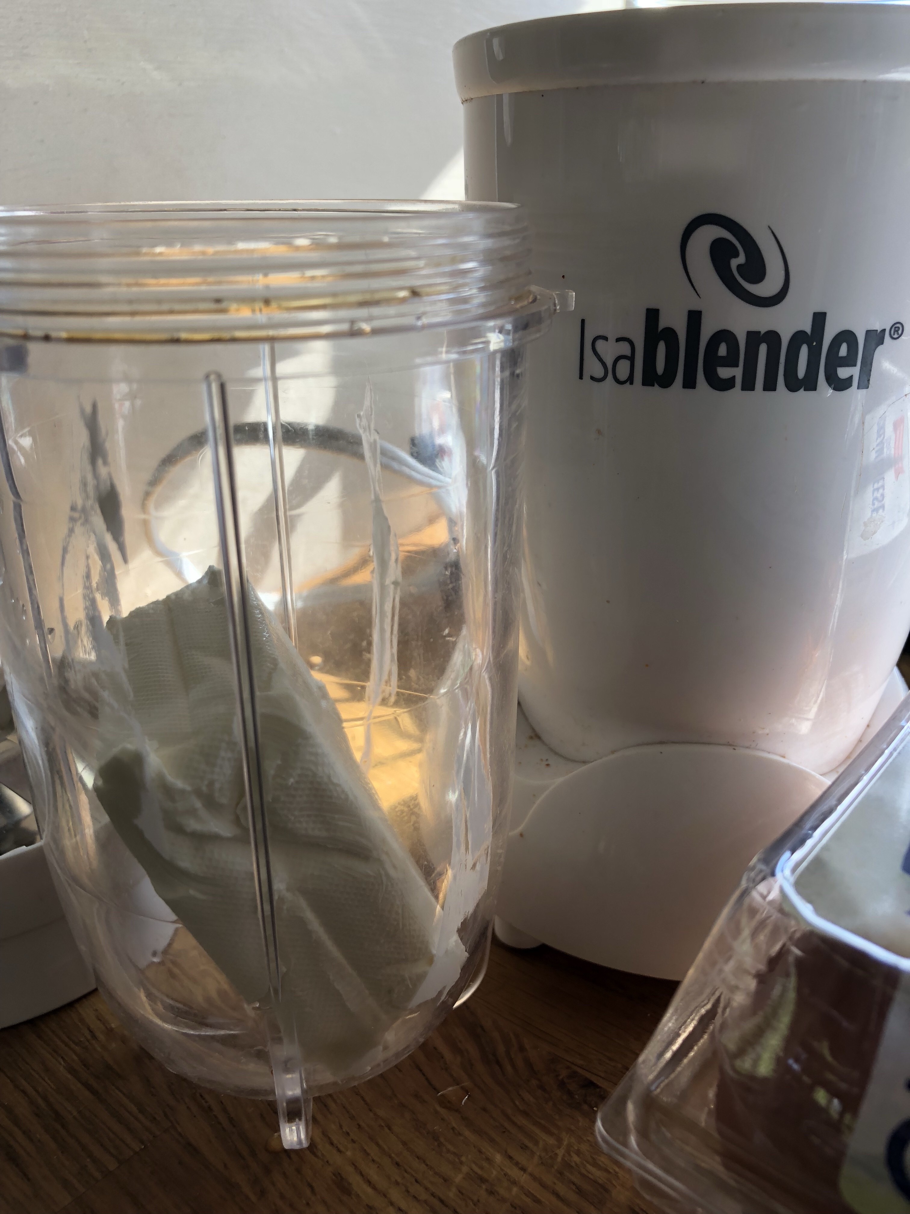 Put cream cheese and eggs in a blender. I took my blender off and shook it to have an even batter.