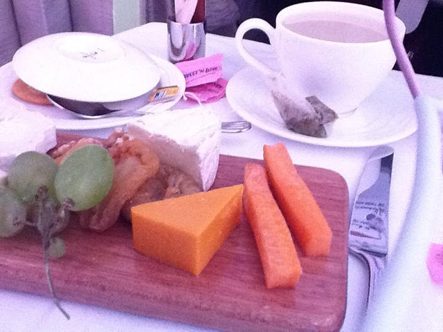 I did decide to have a couple of pieces of cheese. I’ve been good, I’ve been in ketosis for 3 weeks now and it felt a little like cheating. A cup of chamomile tea and listening to Adele in my headset…nice flight thus far.