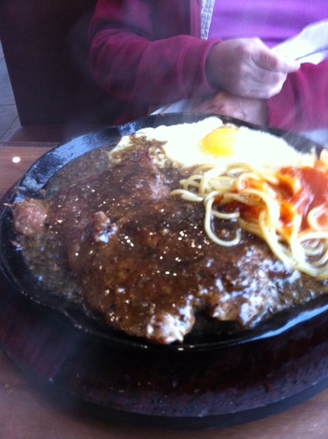 Early dinner: Blackened “Australian Small Calf”… we’re assuming that is veal… hehehe that had the hottest black pepper ever!