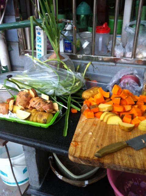 Then off to prep the veggies. Most of the veggies in tonight’s meal were from the family’s vegetable garden… how awesome is that?