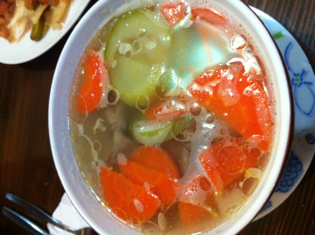 Dinner: Steak fajita w/onions and pepper and a TBS of guacamole & beef soup with carrots and zucchini in clear broth