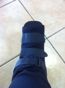 Then it was time to fly home. Wednesday morning I drove to work and then went to my chiropractor Ian Schtulman’s office for an X-ray. Diagnosis… Fractured 5th metatarsal. That’s a fancy word for broken foot. So I am now wearing this gorgeous fashion accessory…