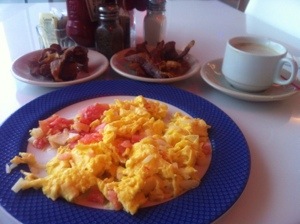 I missed baggage check in by TWO MINUTES, so had to change flight to 8 hours later… Not a big deal. Had a yummy breakfast…