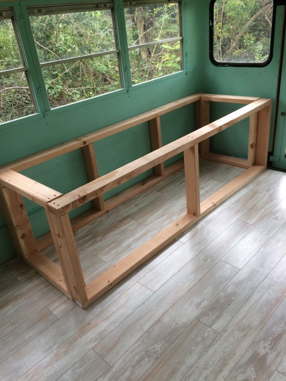 So I felt like I wanted the toilet area’s floor space to be a little more spacious, and I wanted the toilet area and the shower to be all once space. So we took out the bench, (you can see it in the bottom left of this pic), took out the wall that was separating the two areas and built a platform…