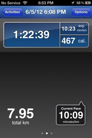 What a rush! My friend Gail told me I’d start out to quick and she was right… My first kilometer was in 7:12… I slowed my pace, walked some, ran, met a lovely lady named Trisha, picked up discarded cups (I know, I know) and finished. It was awesome.