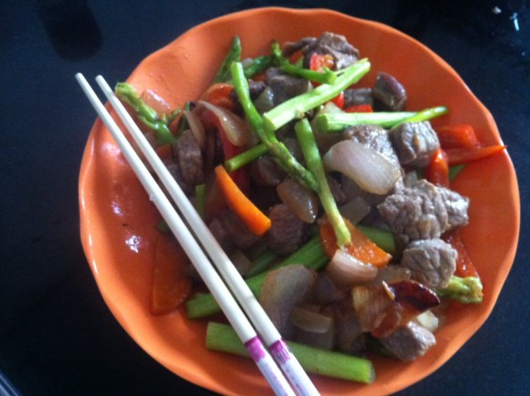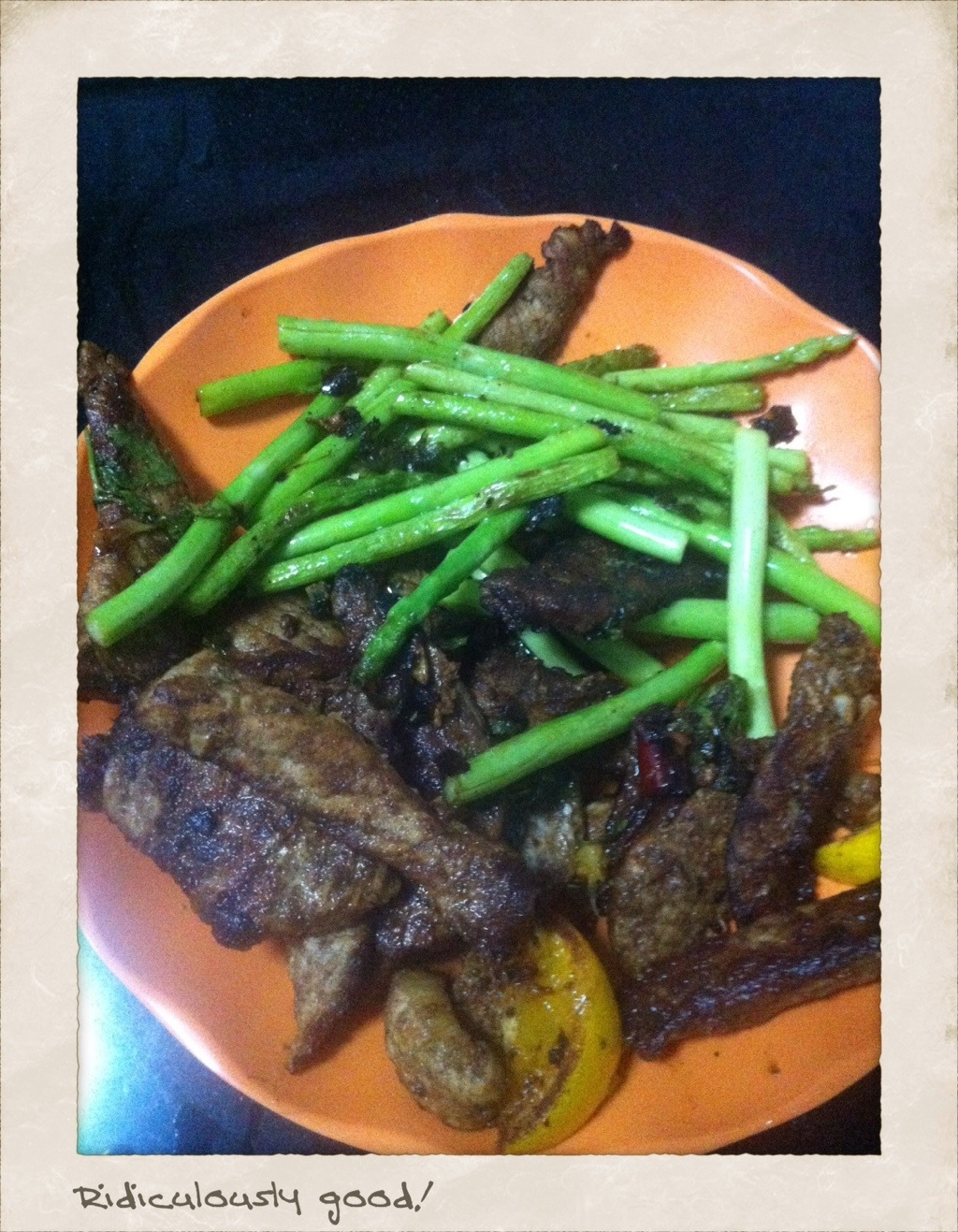 Plated with an organic salad and this was a perfect meal 🙂 I also enjoyed a 1/2 cup of rice and those purple things are carrots!