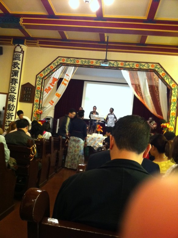Back to my normal weight loss 🙂 Still plugging along. I had the morning off for church and had a great time. A few things to note… people think that China is an atheistic country, when in fact, most people here are religious. The largest percentage being Buddhist. It is estimated that there are over 50 million Christians in China. And I have to say the church was rockin’ Easter Sunday morning. And yes, it’s a REAL church with a big ole cross on the top of it… just across the street from the Buddhist temple 🙂