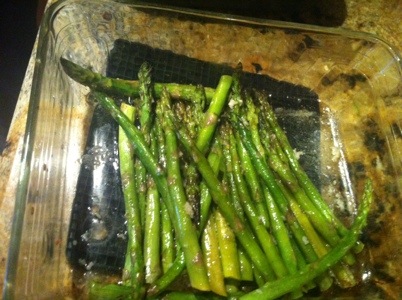 Asparagus, 1 tsp of organic sweet, salted butter, 2 crushed garlic cloves