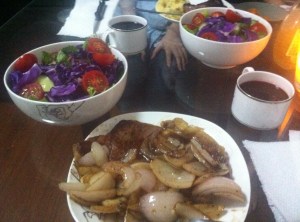 Beautiful room in Taizhou. I make Kitty and I dinner… Now listen here folks… If I can haul my little stove, pan, spatula, meat and onions 3 hours on a train, 48 hours after surgery and stay on my diet… Then SO CAN YOU! ๐