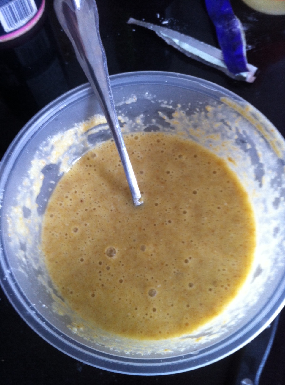 Plan B was removing the flesh from the pumpkin, mashing it, adding in 4 pkts of Splenda, a Tbs of ghee and a tsp of cinnamon… OH MY GOODNESS was this yummy!