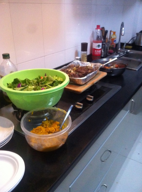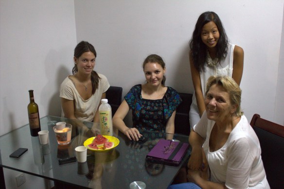 Last week I met 3 Swedish students that are here in Hangzhou to study a semester at the local university. I’m an extrovert (I’m sure most of you figured THAT out by now!) and the young man in the group was wearing a Miami Dolphins cap, so of course, being the Dolfan that I am, I said hello! By the end of the conversation I had invited Jacob, Diana and Hanna to my flat for dinner on Friday. Tatiana, one of my colleagues, also joined us.