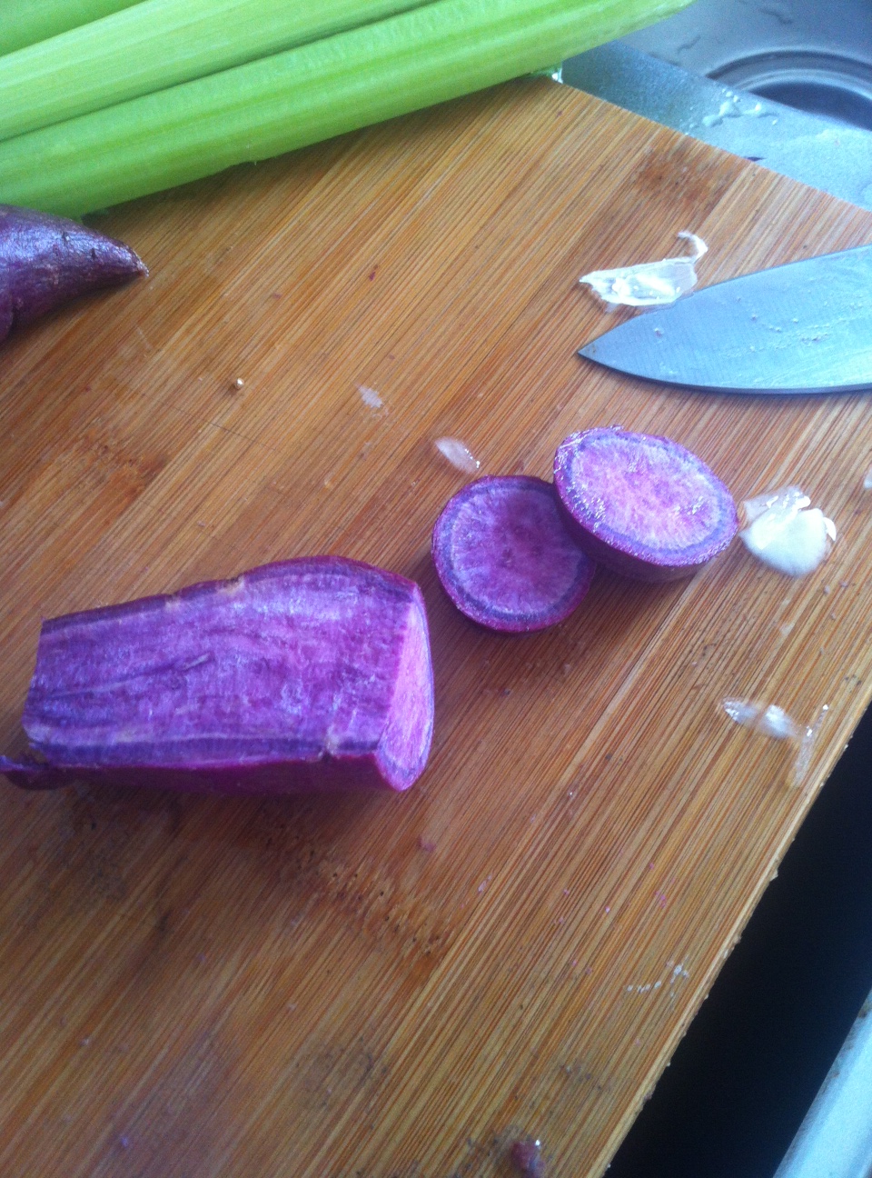 Taro in all it’s purply glory… It’s quite starchy, but has a lot of bang for it’s buck… it’s full of fiber and tastes a bit nutty.