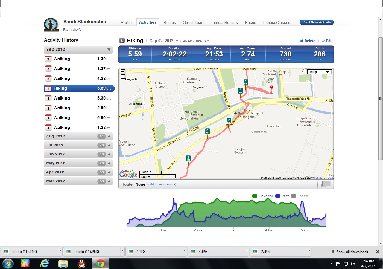 Last year I walked on my first day of work. I was a month into the Dukan Diet and I weighed 236 lbs/107.5 kgs. I was walking every day in Abu Dhabi for the prescribed 30 minutes. On that walk to work which is 1.5 kms/0.92 miles I decided that I was going to walk to and from work EVERY SINGLE DAY for the whole year of my contract. AND DAMMIT… I DID! I walked every single day to work for 12 months. My estimate (taking into consideration vacations and trips to work in other cities, where I also walked to work) is that here in Hangzhou I walked to work approximately 200 times. That’s 200 miles! Woot!