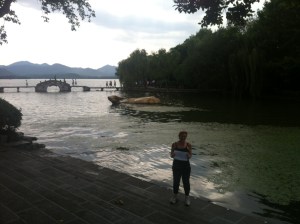 I then got back on the subway and found my way to the grocery store that I shop at in Shanghai and found a restaurant that I hadn’t eaten in before. Sat down at a table with a lovely gentleman named Stern from New Jersey, in China teaching for a year, and had a wonderful conversation over lunch… we’re Facebook friends now 🙂 and then I got a little shopping done… mostly a backpack and sack full of groceries to sustain me through the week. I then took the subway back to the train station for the ride back to Hangzhou. I called Jerry, my driver (I love saying that… he’s a very cool dude!) and asked if he could pick me up… he said yes and told me to keep an eye out for the special way he was going to display my name at the train station…